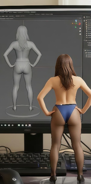 フィギュアの可能性は無限大ですね、これはまた過激な(笑)。こんな素材はいかがでしょうか?黒パンスト一丁という姿でも全く恥ずかしがらずポーズをとる妻です。