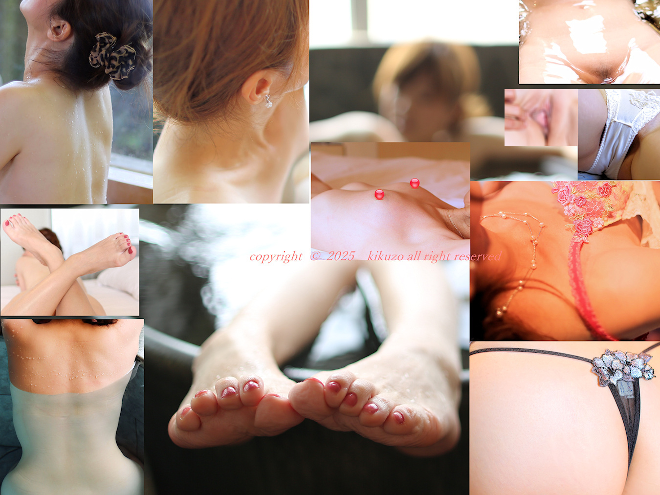 まんちさん。アルさん。youyouさん。motokantokuさん。 応援コメントありがとうございます。 部分クローズアップ画作ってみました。 うなじ、脚先、下着跡の残る背中、T尻、胸、クロッチなど さて好きな所は?