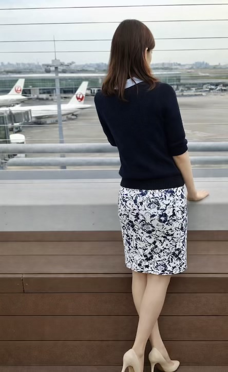 スタイルのいい、清楚な雰囲気の女性ですね。