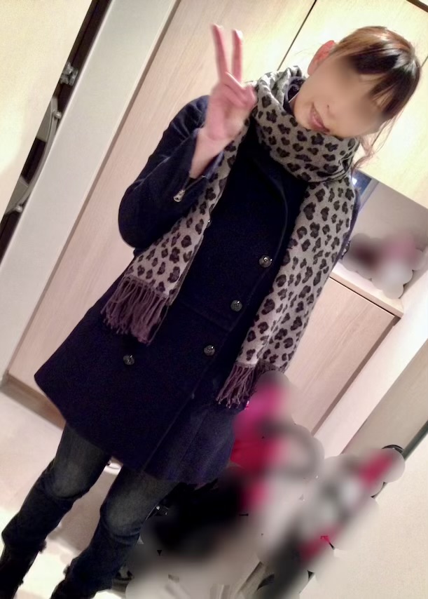 また、スカートが見えないコート姿がミニスカートの丈を想像させて