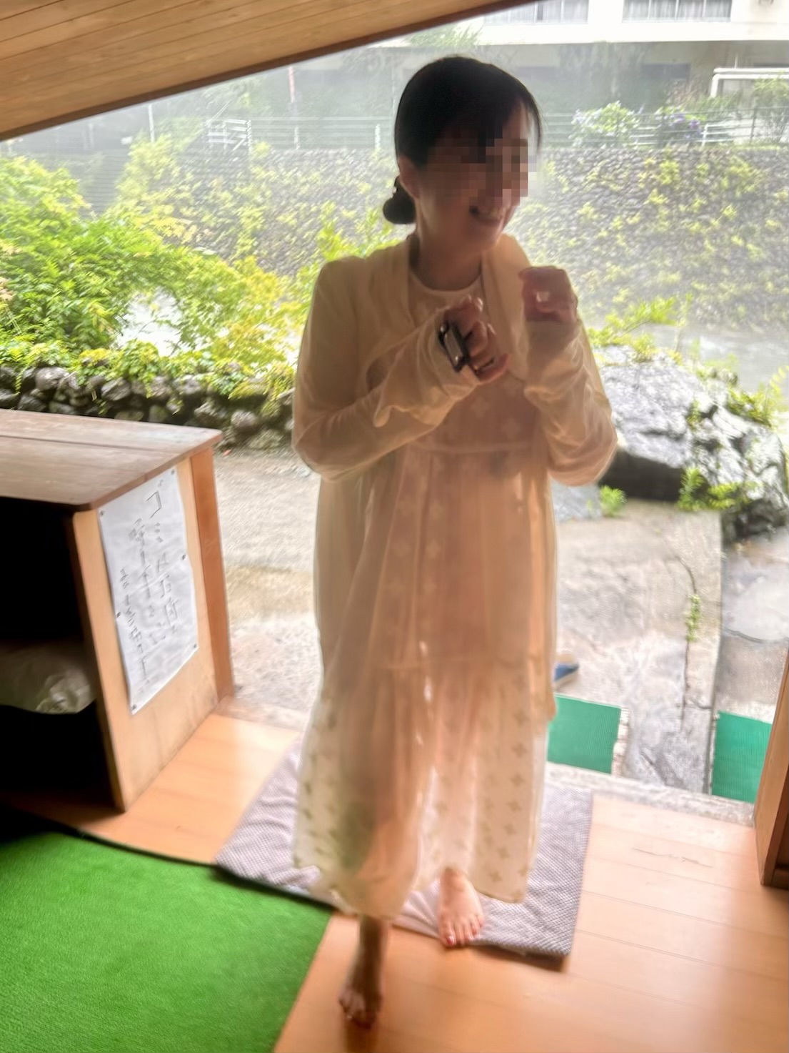 この透けたワンピースで移動の間