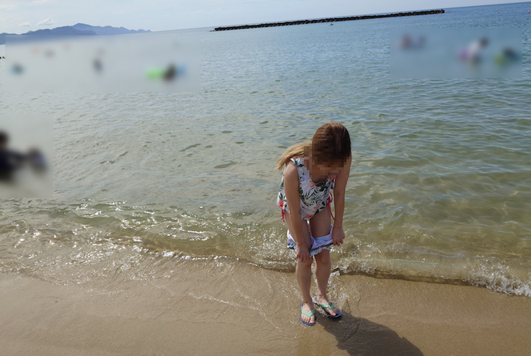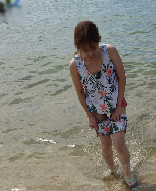 マイクロビキニ着用で海水浴に行った時の写真です。最初、隠してましたが脱ぐよう指示しました。